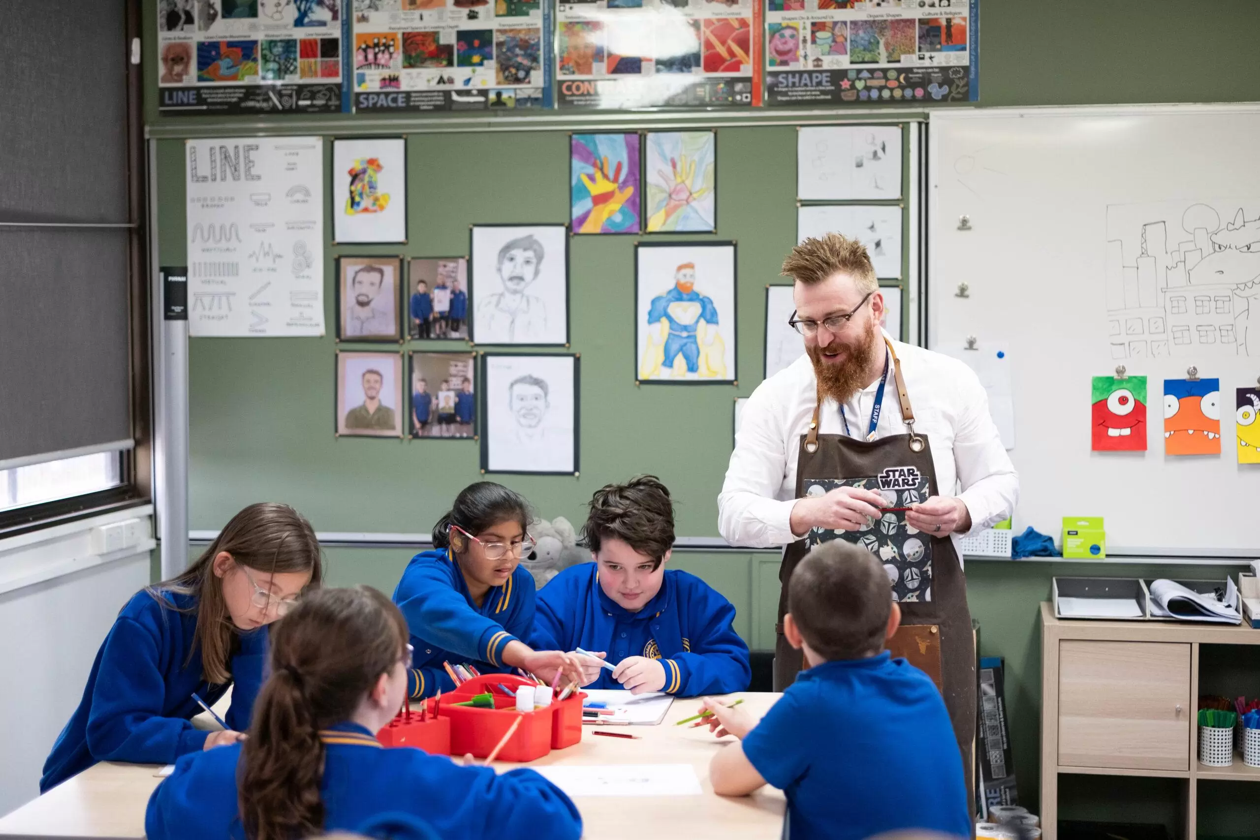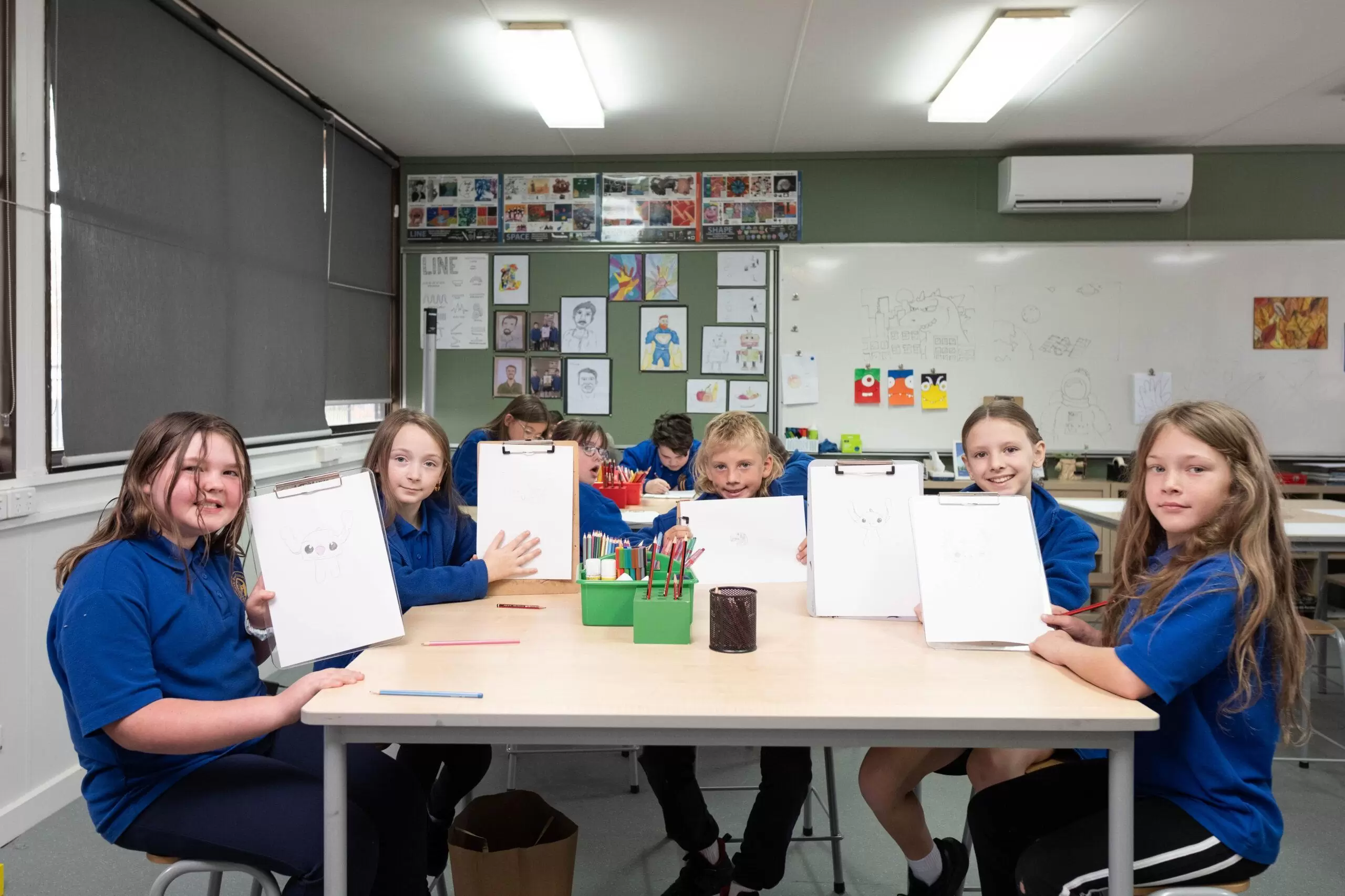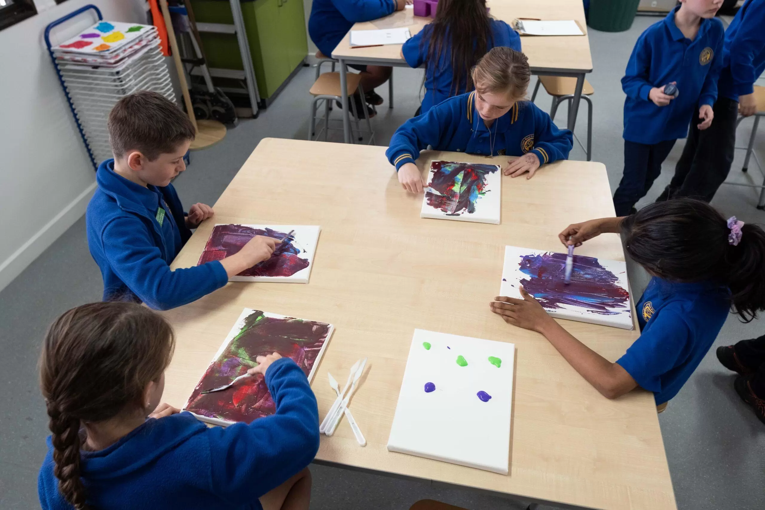 The curriculum supports the development of creative processes and practices providing insights into the impact culture can have on ways of knowing, doing and being Australian as well as a global citizen. Students learn to develop conceptual and perceptual ideas through inquiry process, critical and creative thinking skills, confidence, curiosity, imagination and enjoyment through personal expression. All students are provided with a one-hour intensive Visual Arts lesson a week to develop their knowledge, skills and techniques.